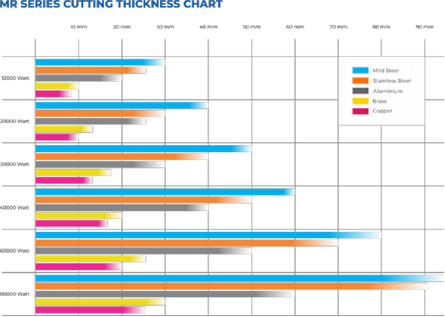 The MR Series Fiber Laser Metal Cutting Machine is available with laser power options from 12 kW, 20 kW, 30 kW, 40 kW, 60 kW, and up to 80 kW. This range allows companies to match machine capability with their specific cutting thickness and production requirements, whether they are processing medium plates or heavy industrial components.